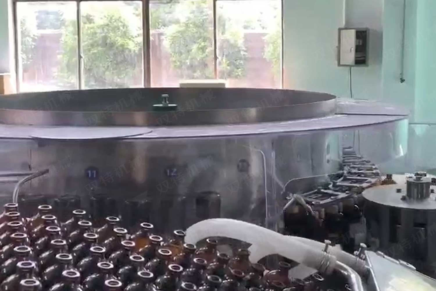 洗瓶機(jī)的過程是空瓶進(jìn)入輸瓶螺桿,由星輪傳動(dòng)到夾瓶工位,洗瓶的整個(gè)過程瓶底均懸空,其優(yōu)點(diǎn)是著力點(diǎn)在瓶頭和頸部,是瓶子厚硬的部分,在清洗過程中不會(huì)損傷或壓扁,洗瓶機(jī)可調(diào)整多種瓶子,且調(diào)整簡(jiǎn)便。